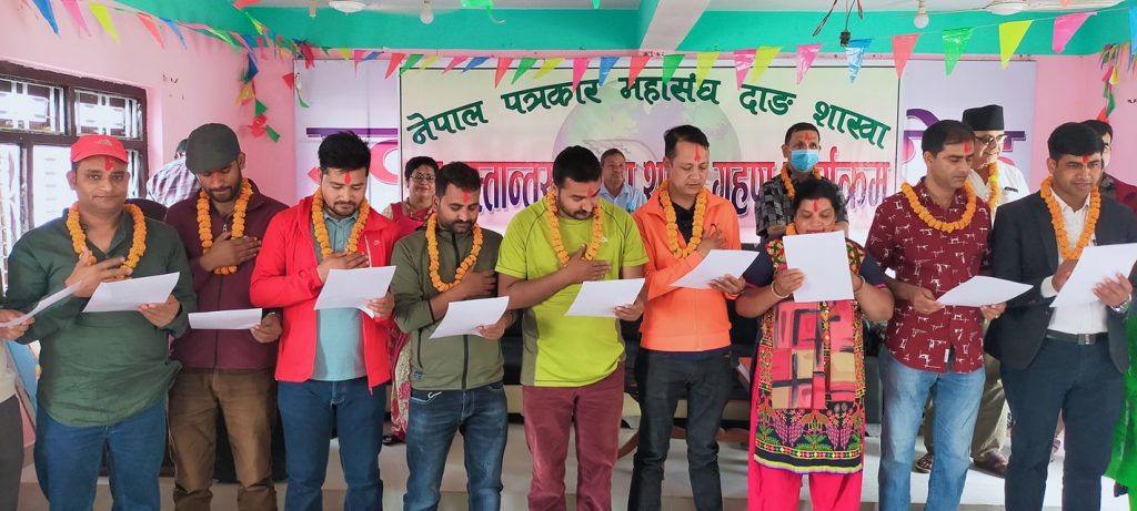 नेपाल पत्रकार महासंघ दाङ शाखाका नव निर्वाचित पदाधिकारीहरुले पदभार तथा सपथ ग्रहण गरेका छन् । आज महासंघकै भवनमा एक कार्यक्रमका विच निर्वाचन समितिका संयोजक सुदिप गौतमले सपथ ग्रहण गराउनुभयो भने निवर्तमान अध्यक्ष सविन प्रियासनले नवनिर्वाचित अध्यक्ष दुर्गालाल केसीलाई पदहस्तान्तरण र पदभार गराउनुभएको हो ।