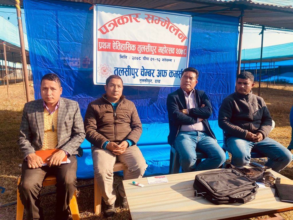 तुलसीपुर । तुलसीपुर चेम्बर अफ कमर्शले आउदो पुस १ गतेदेखि १२ गते सम्म आयोजना गर्न लागेको तुलसीपुर महोत्सव—२०७८को तयारी पुरा भएको जानकारी दिएको छ । महोत्सवक मुल आयोजक समितिले महोत्सवस्थल पत्रकार सम्मेलनको आयोजना गरी महोत्सवको तयारीवारे जानकारी गराएको हो ।