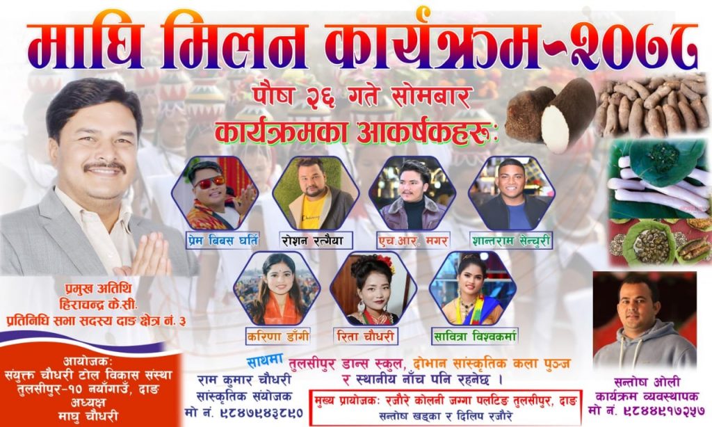 तुलसीपुर १० मा माघि मिलन कार्यक्रम हुदै